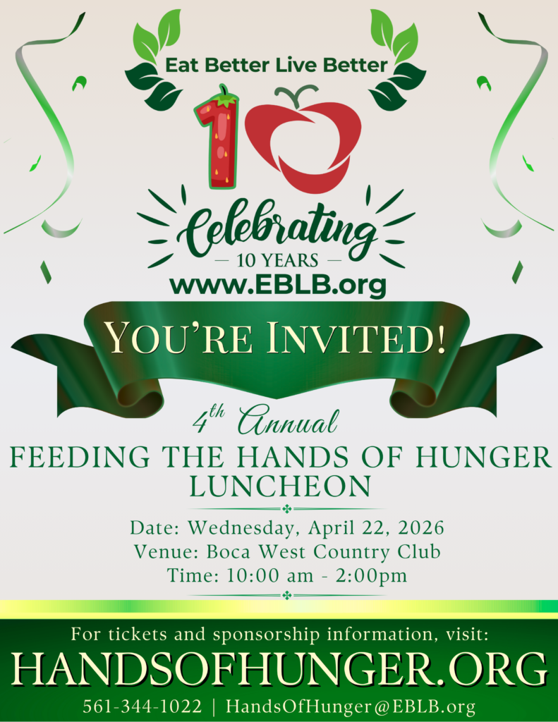 We invite you to join us on Wednesday, April 22, for our 4th Annual Feeding the Hands of Hunger Luncheon as we celebrate a decade of service.